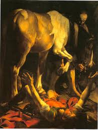 Nous avons deux versions successives de la conversion de saint Paul par Le Caravage. De la première, la méditation de Victor Hugo serait presque la description. Dans la seconde, Paul est au sol, les bras ouverts vers un ciel presque absent de la toile ; son visage est à découvert, paisible et d’une stupéfiante jeunesse. À l’arrière-plan du cheval qui occupe le centre du tableau, un homme tient en bride l’animal apeuré dont la tête est tournée vers son maître terrassé. Il l’apaise. Lui aussi regarde Paul, mais sans étonnement, comme s’il comprenait ce qui se passe : se découvrir aimé depuis toujours.